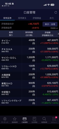 本日の日経平均は歴史的な大幅上昇となり、史上最高値を更新しました。私の保有銘柄も、昨日の厳しい状況から一転して、すべての銘柄が前日比プラスの「白星」となりました。昨日は呼吸が浅くなるほど落ち込みましたが、ようやく少し落ち着いて相場を眺める…