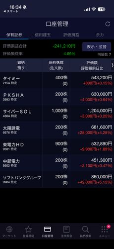 本日の日経平均は歴史的な大幅上昇となり、史上最高値を更新しました。私の保有銘柄も、昨日の厳しい状況から一転して、すべての銘柄が前日比プラスの「白星」となりました。昨日は呼吸が浅くなるほど落ち込みましたが、ようやく少し落ち着いて相場を眺める…